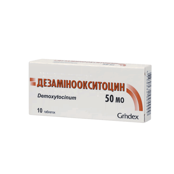 1 таблетка Дезаминоокситоцин содержит: активное вещество – дезаминоокситоцин 50 МЕ.