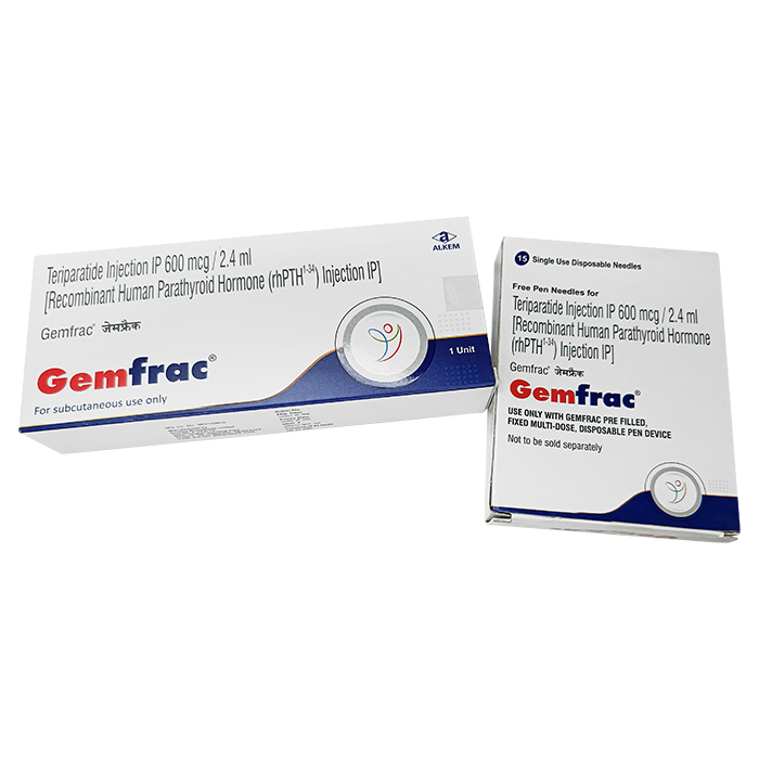 Gemfrac — препарат на основе терипаратида, аналога активного фрагмента человеческого паратиреоидного гормона. Его применяют для патогенетического лечения тяжёлых форм остеопороза, когда кости теряют плотность, становятся хрупкими и легче ломаются даже при незначительной травме. Терипаратид назначают взрослым пациентам с высоким риском переломов: женщинам после менопаузы, мужчинам с остеопорозом, а также пациентам, у которых снижение прочности костей связано с длительным приёмом системных глюкокортикостероидов.