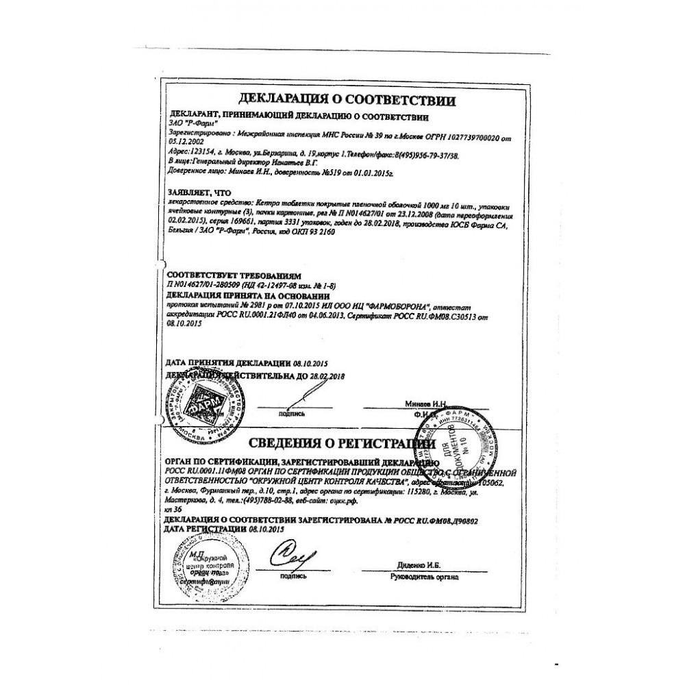 Абсолютная пероральная биодоступность близка к 100%. Сmax в плазме крови достигается через 1,3 ч после приема препарата. Равновесное состояние достигается через 2 дня применения препарата 2 раза в сутки. Сmax обычно составляют 31 и 43 мкг/мл после разовой дозы 1000 мг и повторной дозы 1000 мг 2 раза в сутки соответственно. Степень всасывания не зависит от дозы и не изменяется под влиянием пищи.