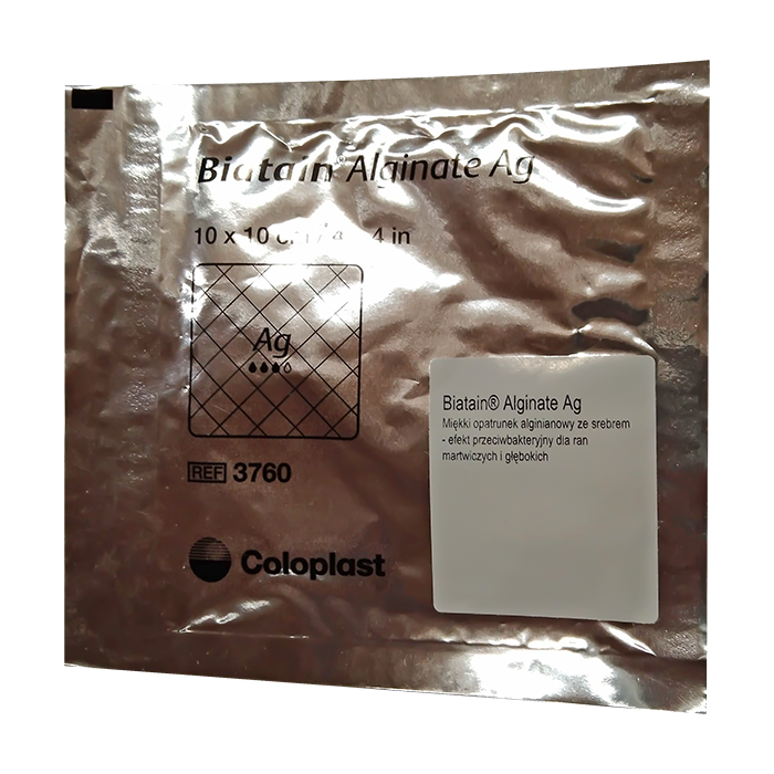 Пенная повязка Biatain Ag содержит антимикробный комплекс серебра, равномерно диспергированный в пене. Серебро выделяется в ложе раны при контакте с экссудатом. При наличии экссудата высвобождение ионов серебра будет происходить до 7 дней