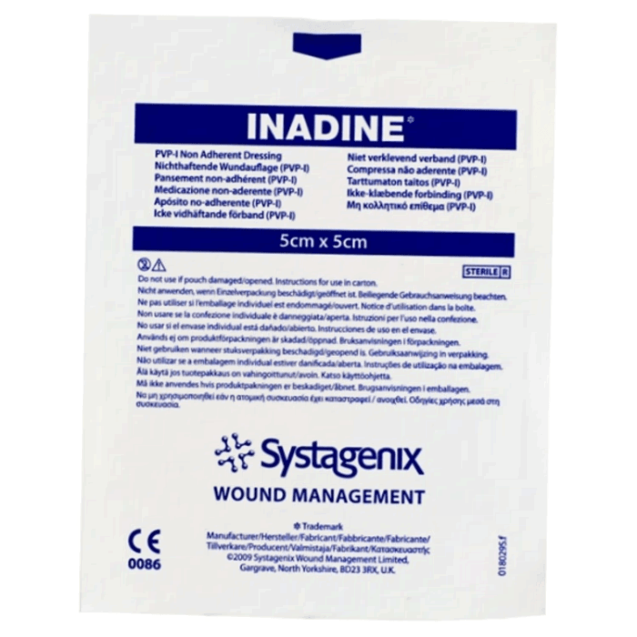 Применение. Разорвать упаковку и достать повязку Inadine стерильными щипцами. Снять первый слой защитной бумаги. Оторвать повязку от остатка защитной бумаги и приложите ее непосредственно к ране. Накрыть и защитить любой внешней повязкой.