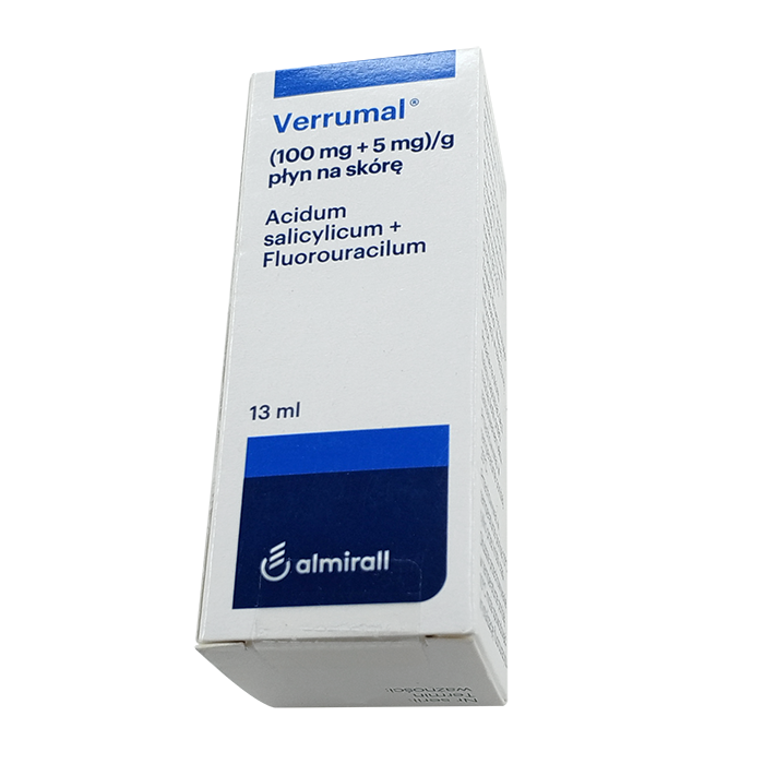 Веррумал комбинированный цитостатический и кератолитический препарат для наружного применения. Фторурацил — цитостатик из группы антиметаболитов. Благодаря своему структурному сходству с тимином, содержащемуся в нуклеиновых кислотах, фторурацил угнетает образование и утилизацию производных тимина, тем самым ингибируя синтез ДНК и РНК. В результате этого тормозится репликация вирусов, вызывающих развитие бородавок, а также рост клеток бородавок. Салициловая кислота оказывает кератолитическое действие. Кроме того, салициловая кислота и входящий в состав препарата диметилсульфоксид способствуют проникновению фторурацила в бородавку. Оказывает антисептическое действие.