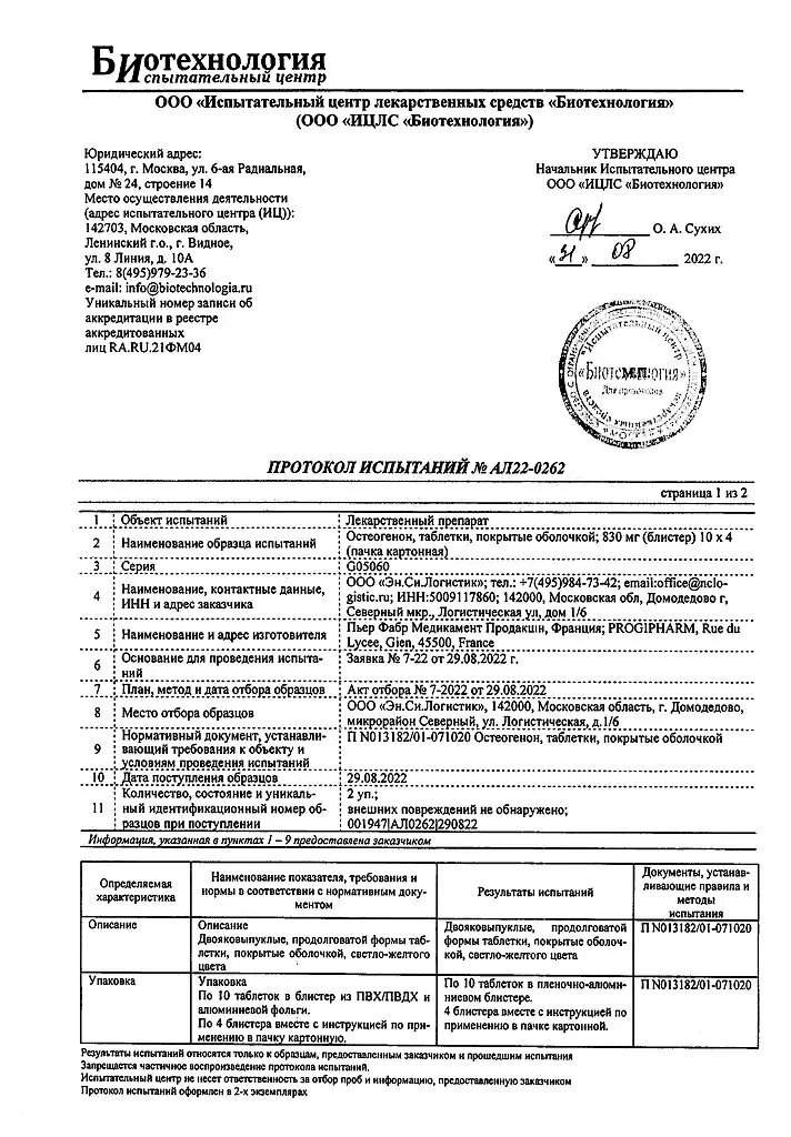 Форма выпуска, упаковка и состав препарата Остеогенон