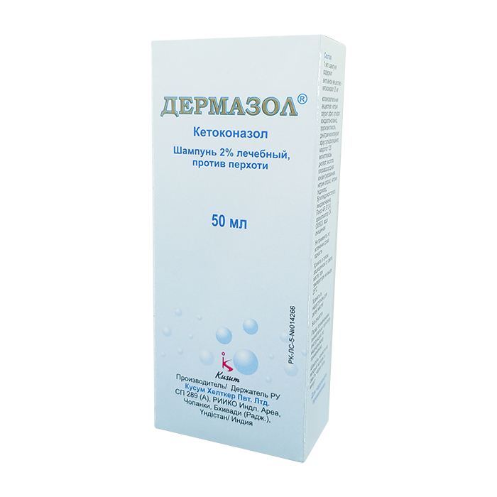 Показания. Дермазол 2% шампунь назначают пациентам с себорейным дерматитом и экземой кожи головы, а также при разноцветном и отрубевидном лишае волосистой части головы. Средство используется в лечебных и профилактических целях.