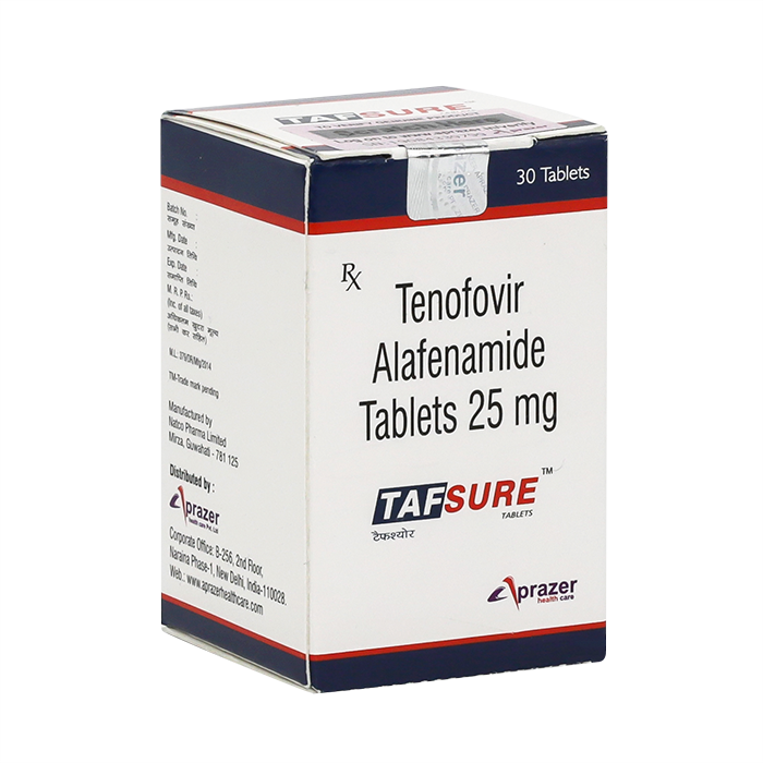 1 таблетка содержит тенофовира алафенамида фумарат 28,04 мг (в пересчете на тенофовира алафенамид — 25 мг).
