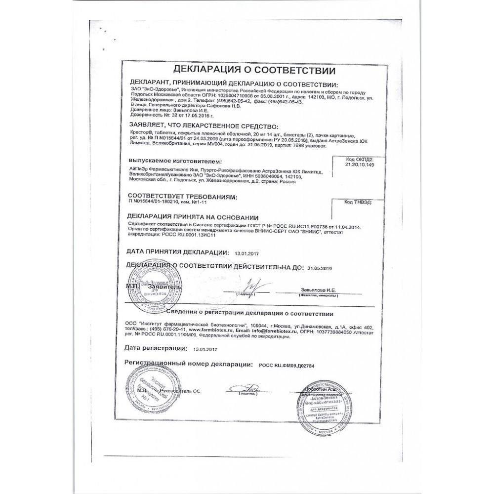 Крестор - таблетки по 20 мг. В блистере 28 таблеток.