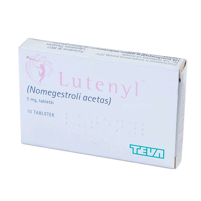 Лютенил - Гестогенный препарат для перорального применения. Назначается в терапии эндогенной недостаточности прогестерона различного генеза. Активно действующее вещество препарата — номегестрола ацетат не оказывает побочного анаболического, андрогенного, термогенного и кортикоидного действия. При дозировке препарата 5 мг/сутки и его приеме в течении 5-25 дня менструального цикла, происходит ингибирование секреции гонадотропинов, снижается в плазме крови концентрация эстрогена и предотвращается выработка прогестерона.